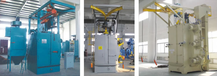 本系列機組由吊鉤承載工件進入清理室進行拋丸清理,設有自轉機構,主要用于鋼結構件、鑄件、鋁合金件及其它零件的表面清理和強化。廣泛用于鑄造、鍛壓、機械、鋼鐵等行業(yè)。